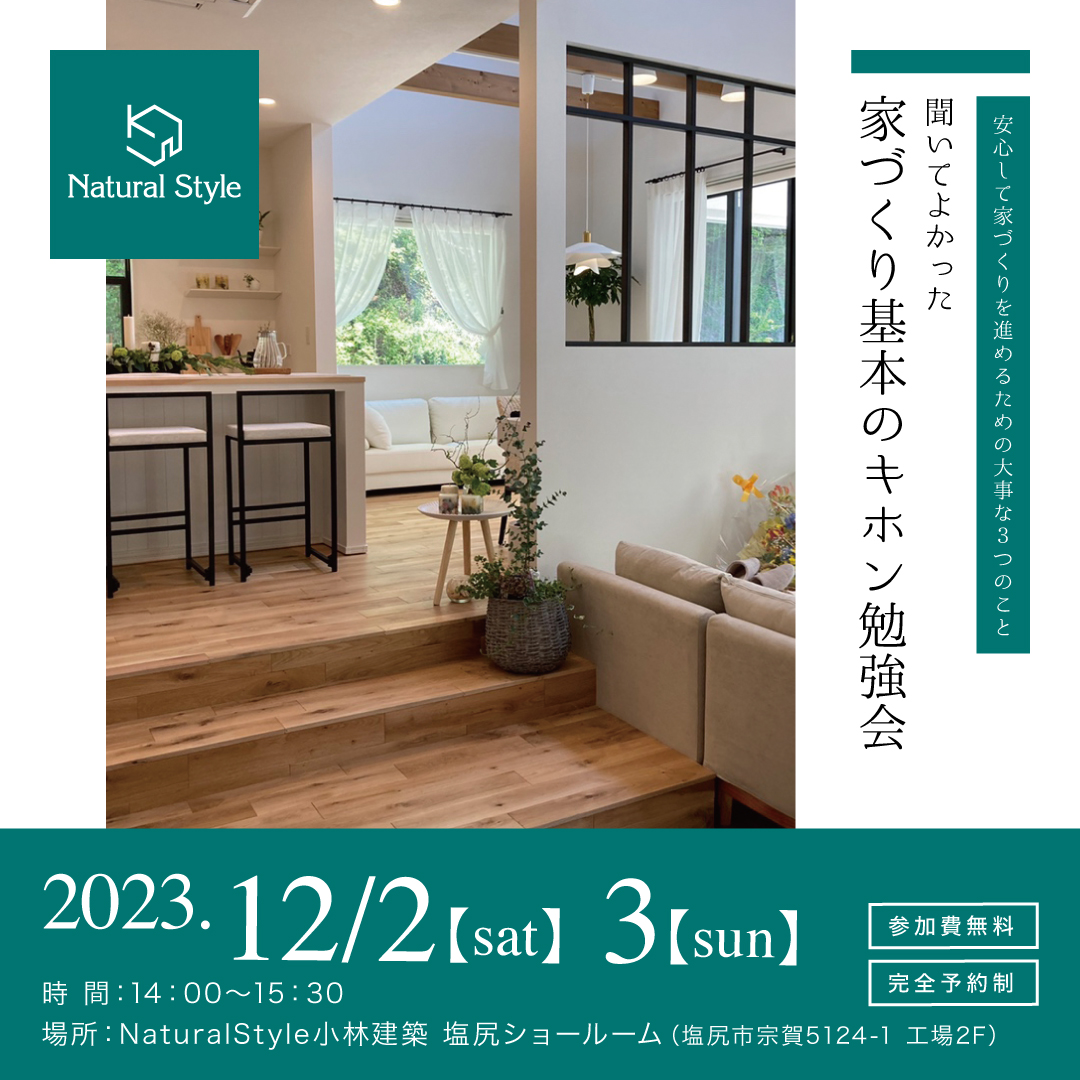 | 開催場所 | NaturalStyle小林建築 塩尻ショールーム (塩尻市宗賀5124-1 工場2F)  |
