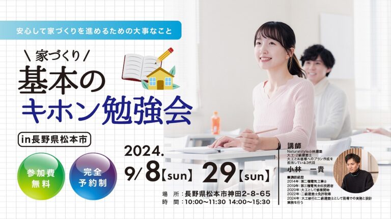 【2024年11月10日(日)・24日(日)】家づくり基本のキホン勉強会 in 松本市