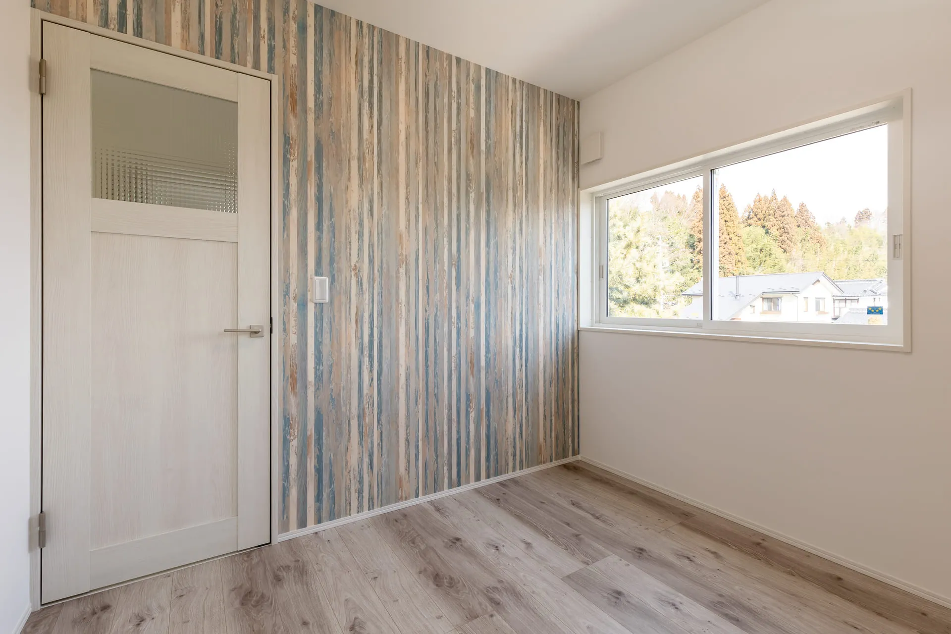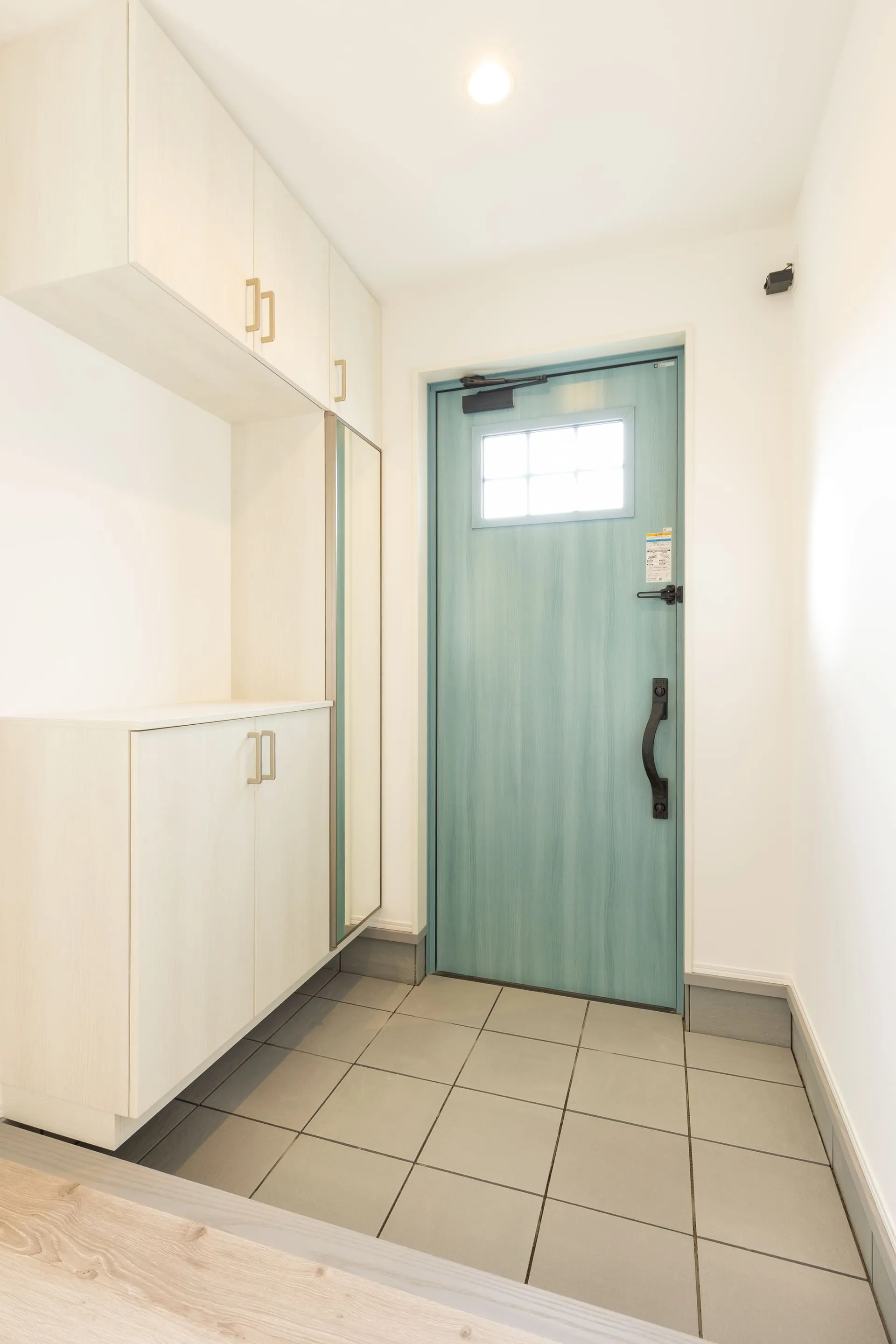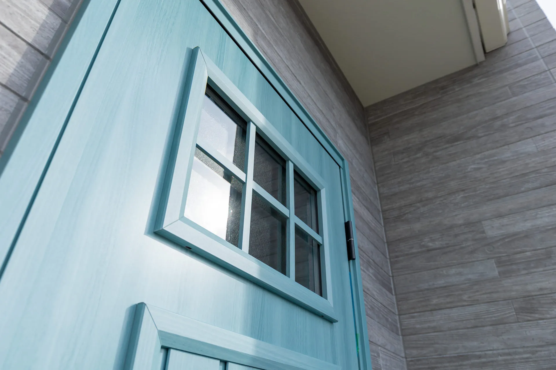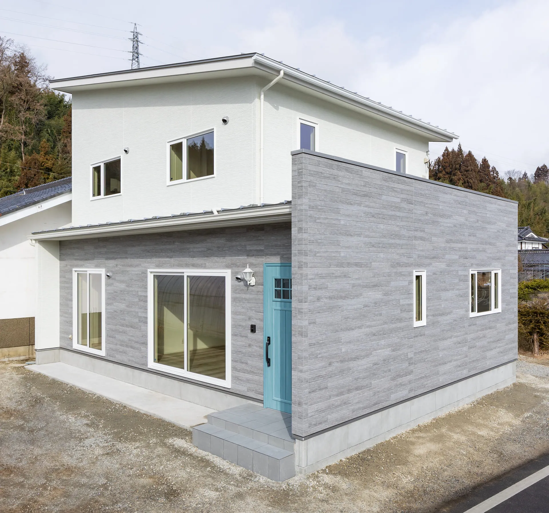 ブルーのドアがアクセントの洋風モダンなお家