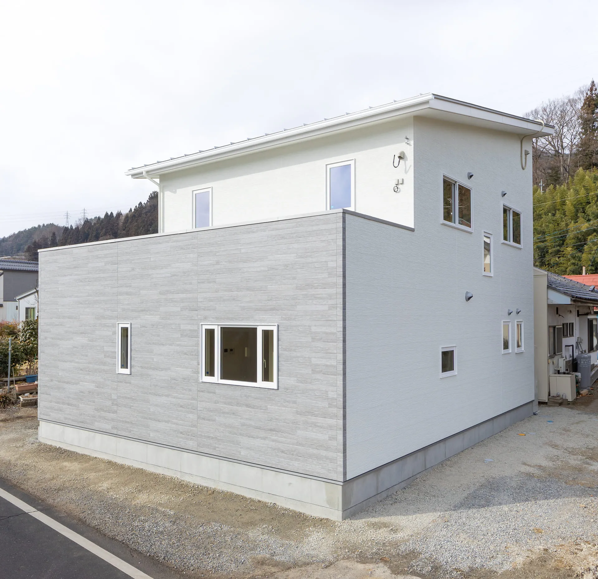 四角いフォルムが美しいモノトーンの家