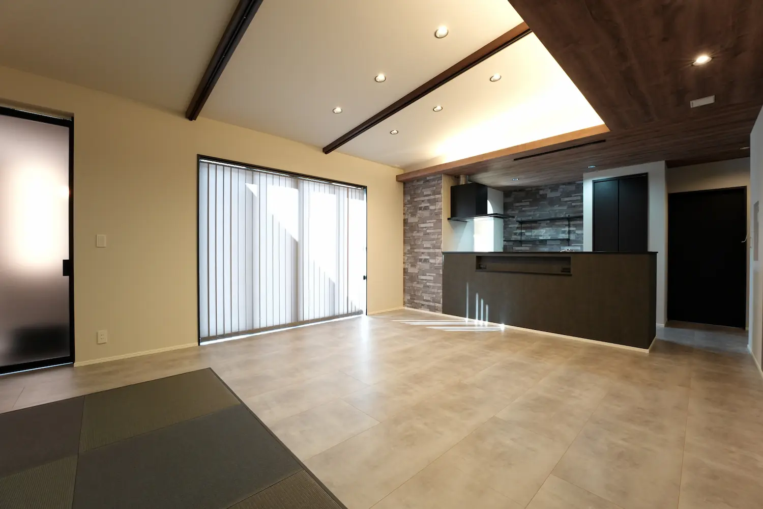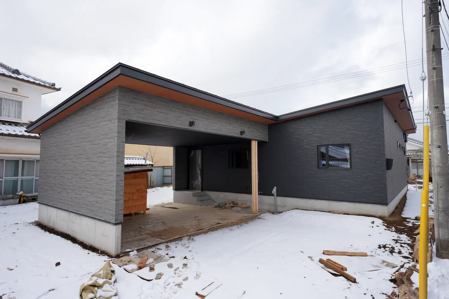 軒のある平屋と木天井が生み出す、落ち着きのあるモダンな住まい