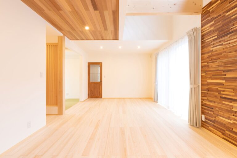 ヘリンボーンのLDKが印象的な家