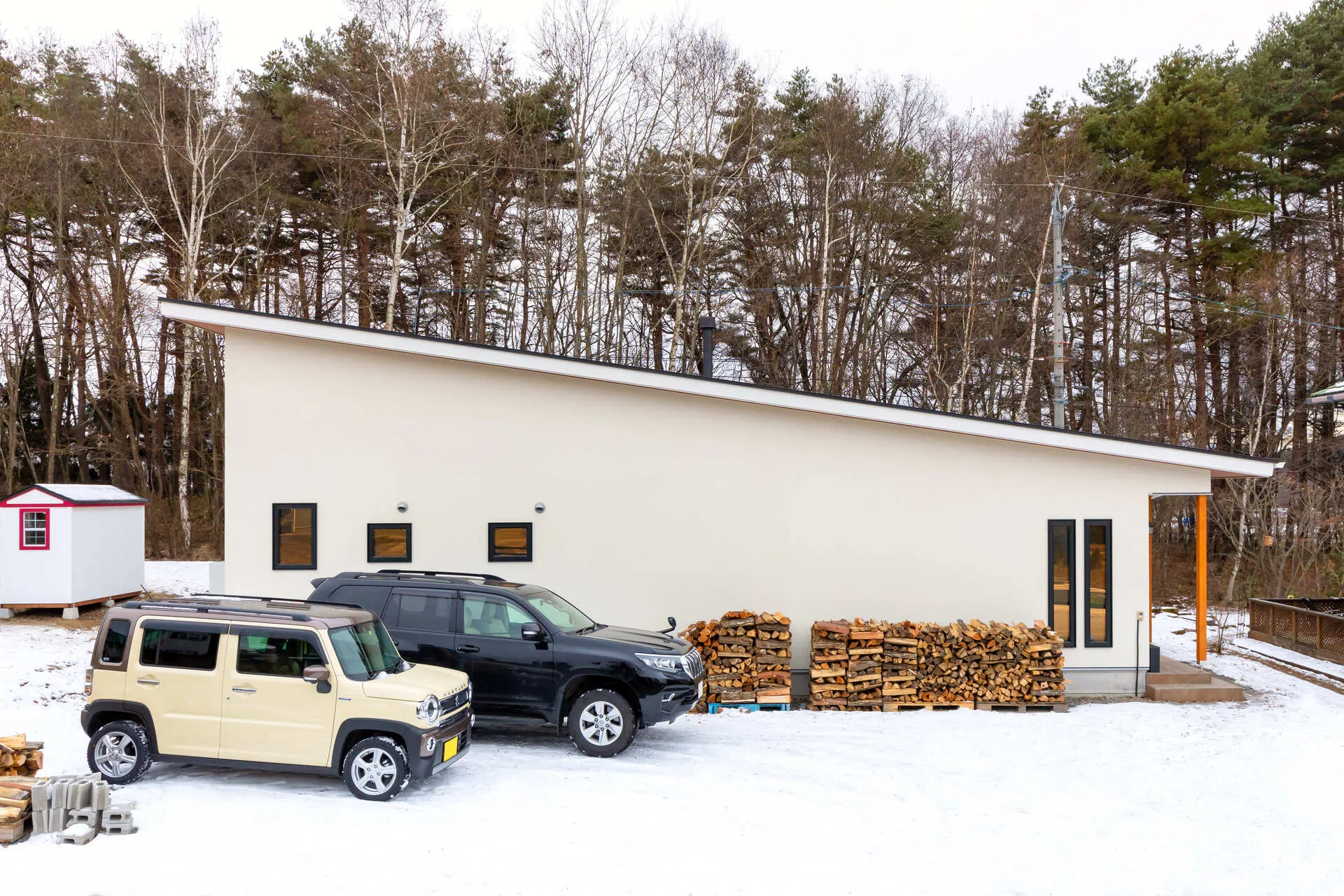 木のコントラストを愉しむ家